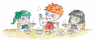 Snídaně je pravá japonská: rejže, spousta zeleniny (čerstvý i různě nakládaný), houby shiitake a samozřejmě miso! Já to zapíjím studeným zeleným čajem. Je to pěknej lomcovák. Když ho dáte na ex, přeběhne vám po zádech stádo breberek, ale pak jste jak na pérkách!